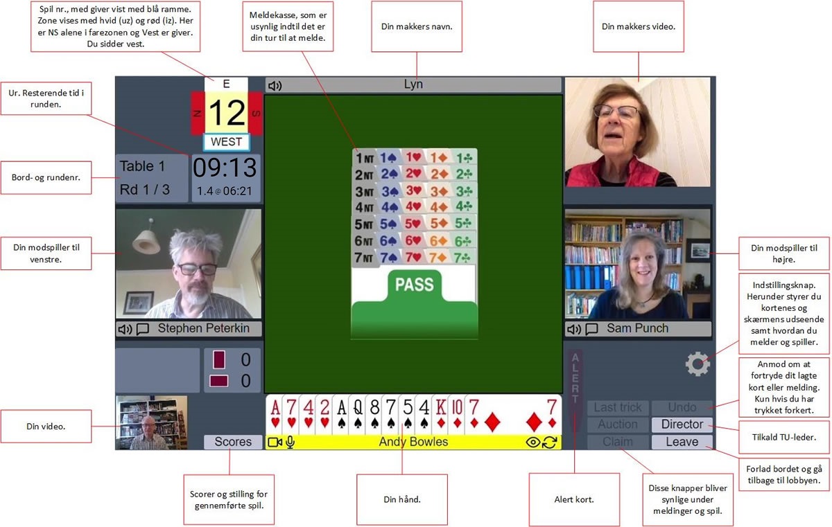 Hos CyberBridge spiller vi med både lyd og billede, så vi kan se og høre hinanden – præcis som i en rigtig klub.