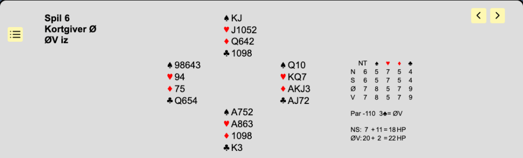 Nu bรธr du springe til 5โฃ๏ธ, som makker kan รฆndre til 5โฆ๏ธ, hvis det var โฆ๏ธ-stรธtte han havde. Der er en