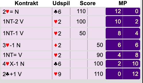 til 3 point og nรฅr op pรฅ total 10p, hvilket er nok til at melde 2โฅ๏ธ, som viser et godt hรฆv i โฃ๏ธ.
