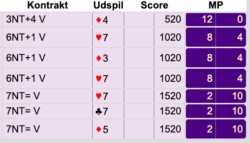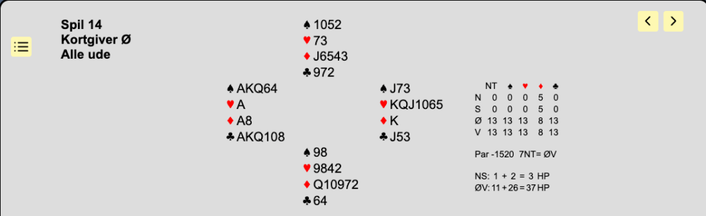 Efter Blackwood 1430, fรฅr man et es + Trumf-D, og sรฅ ligger 7UT lige til hรธjrebenet.